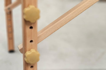 Madeira alemã, lisa, maciça e de alta resistência. Não solta farpas e possui tratamento anti-cupim.