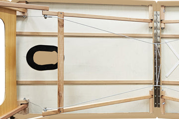 Dobradiça piano inteiriça e estrado extra sob a maca, suporta até 300kg distribuídos.