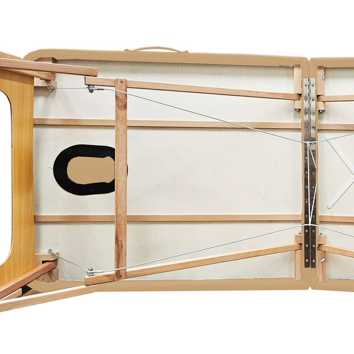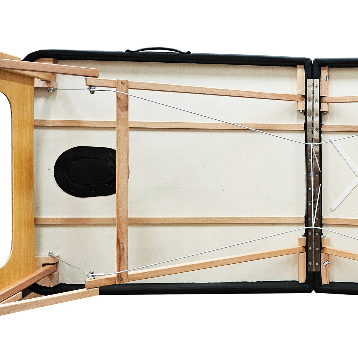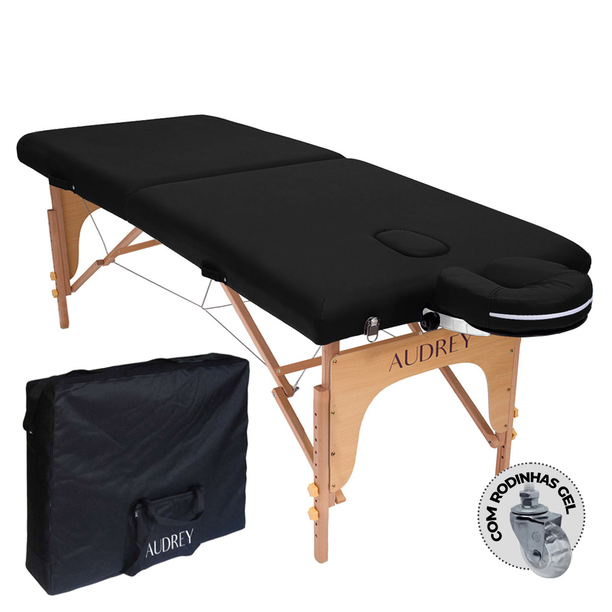 A Maca Portátil Pro Max é a maca portátil mais larga, macia e resistente do mercado. Estrutura desenvolvida com madeira alemã beach de alta resistência, esse modelo conta com largura de 80cm, dobradiça piano inteiriça e estrado extra sob a maca, o que garante maior segurança. Essa linha também possui orifício, regulagens de altura, e apoio de cabeça regulável em alúminio que pode ser encaixado em ambos os lados da maca. Lindo design e fino acabamento, courvin de alta qualidade e 5cm de espuma densidade 28 proporcionando muito conforto ao seu cliente. Além disso quando dobrada se transforma em uma maca maleta que acompanha gratuitamente uma bolsa para transporte e rodinhas em gel.