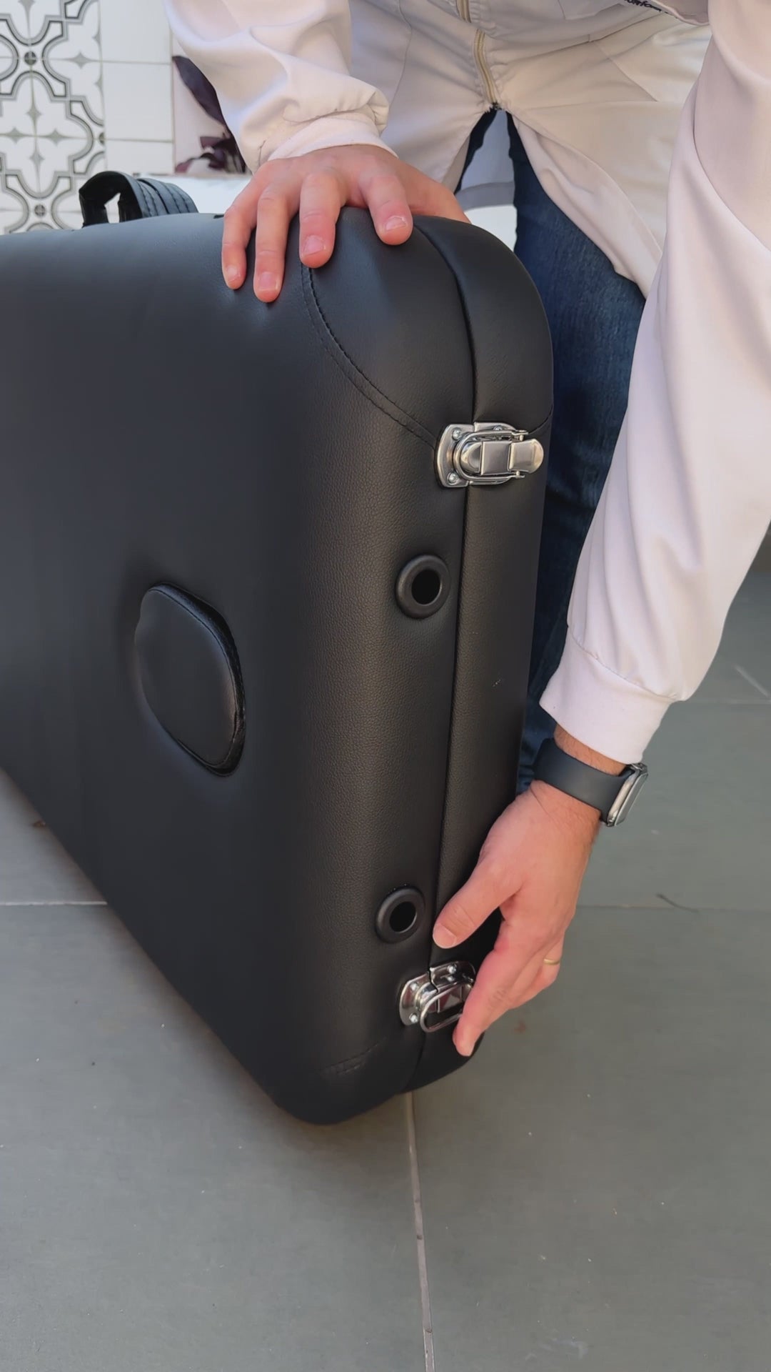 Produzida em estrutura de madeira maciça reforçada, a Maca Portátil Start é ideal para quem quer iniciar os trabalhos com uma maca leve, prática e confortável. Possui 3cm de espuma D24, com Courvin de Altíssima Qualidade com tecido de fácil e eficiente higienização. A maca Start é dobrável e vira maleta com duas alças para facilitar o transporte no seu dia-a-dia. Acompanha também um apoio de cabeça regulável com descanso de braços. A montagem é extremamente simples.